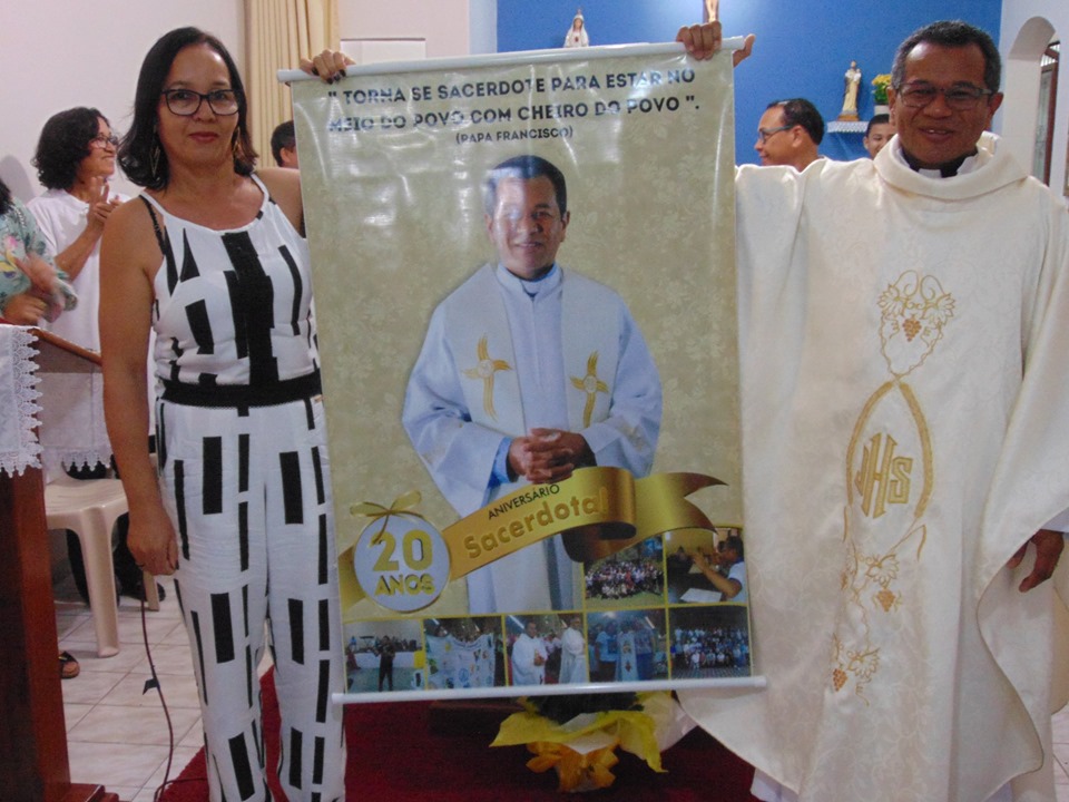 A Missa foi presidida pelo próprio Pe. Pascifal e concelebrada pelo Pe. Nailson, vigário paroquial, e contando com a presença do Diácono Ronaldo de Carvalho, paroquianos, fiéis de outras paróquias e amigos. A Santa Missa foi marcada pela gratidão, alegria e homenagens por estes 20 anos de oferta de vida no sacerdócio do nosso querido e admirável pároco.