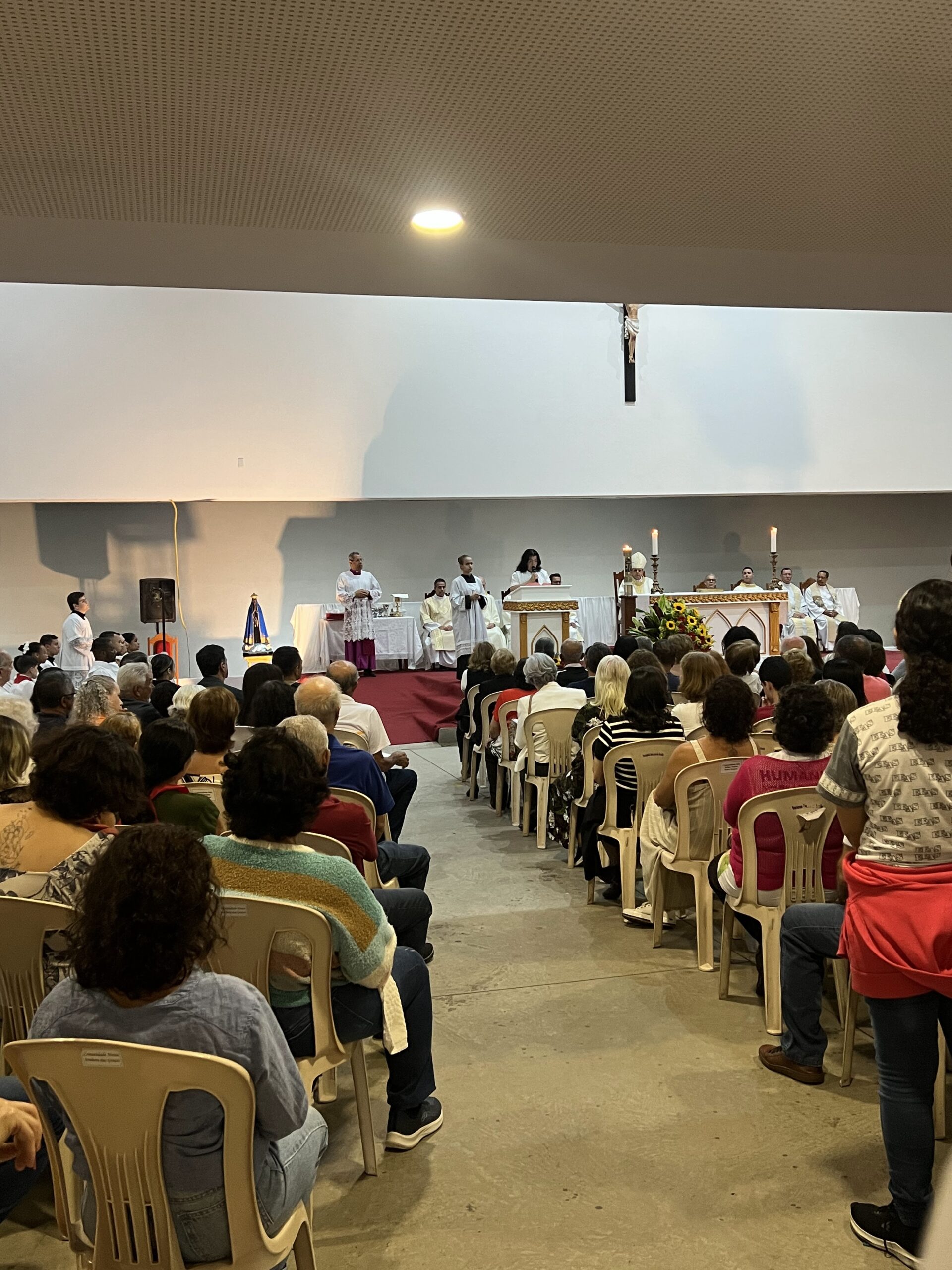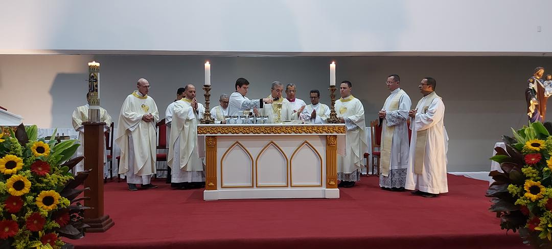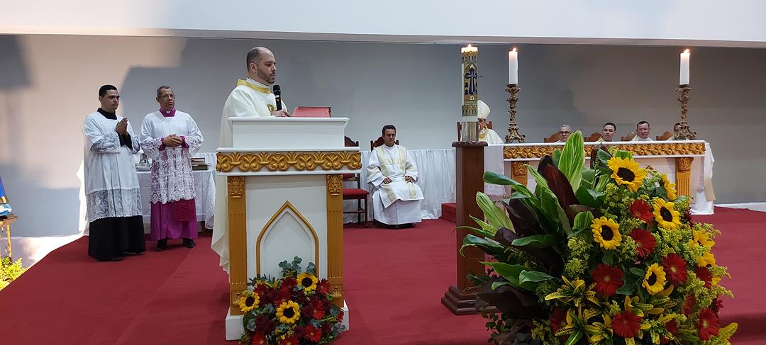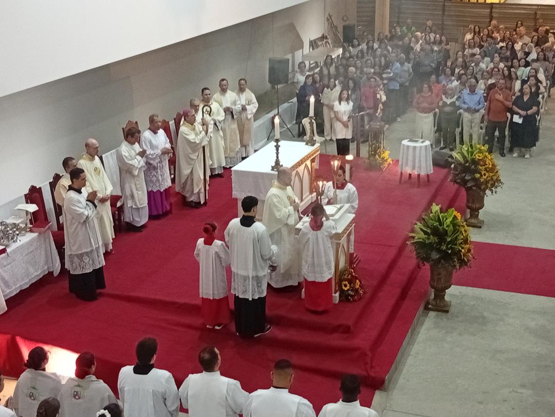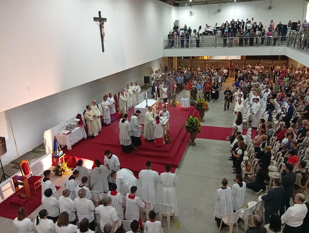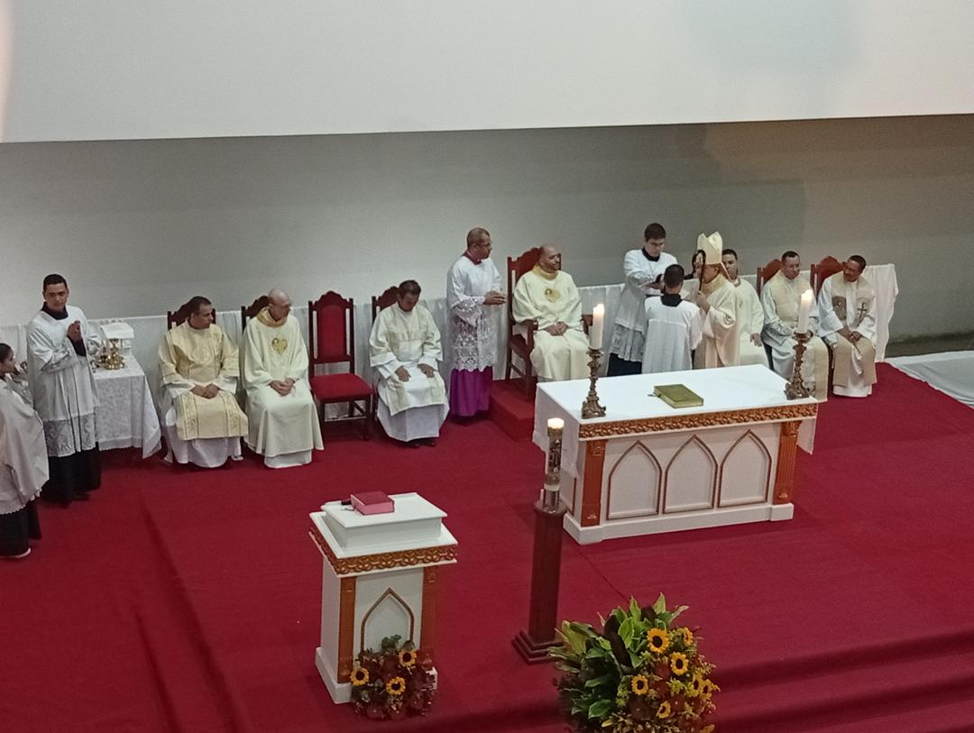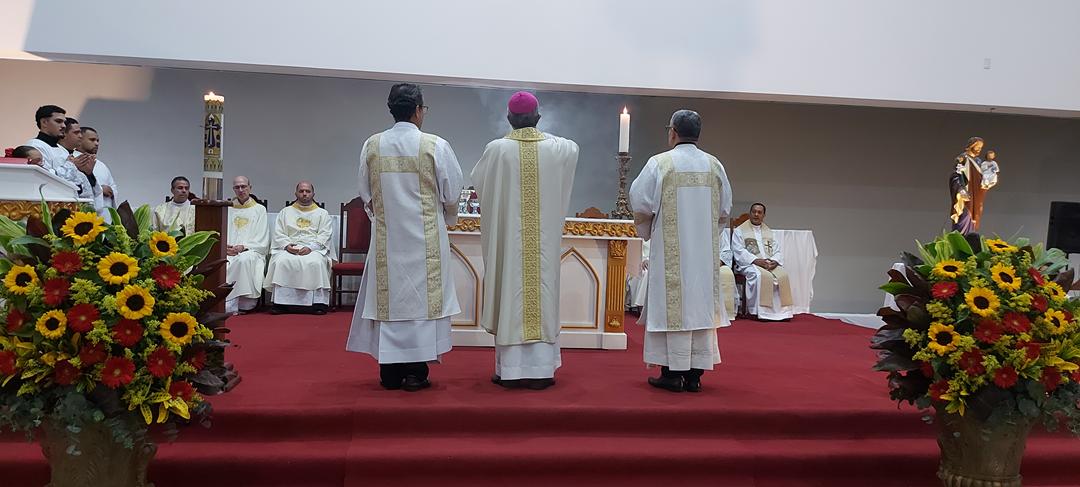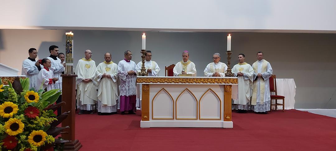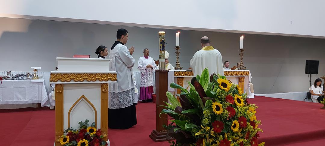 A celebração eucarística contou com a presença de autoridades civis e de uma grande porção do Povo de Deus. Foi concelebrada por diversos padres da Diocese, contando também com a presença de alguns diáconos permanentes e dos seminaristas estagiários de nossa Diocese: André, Marlon e Robson.