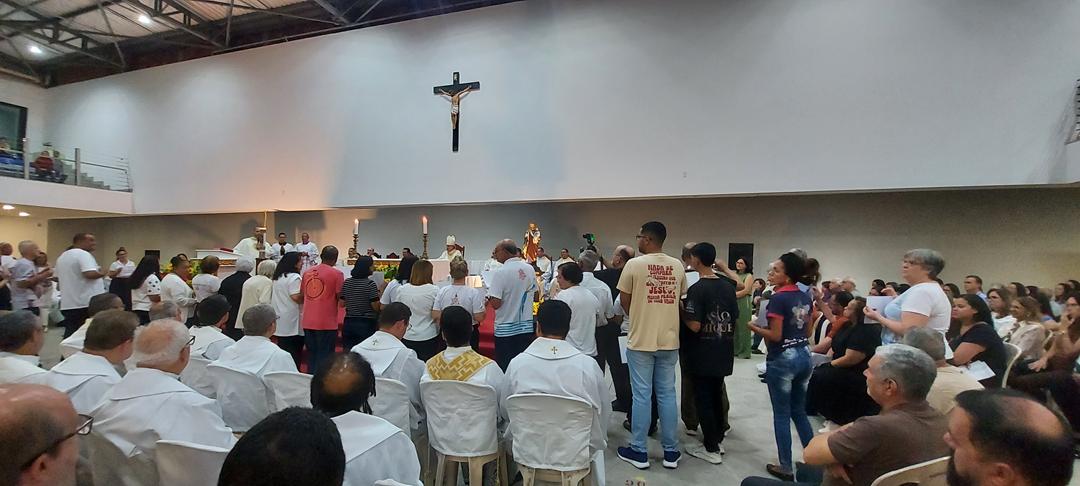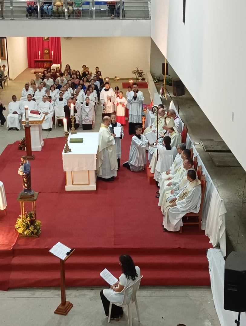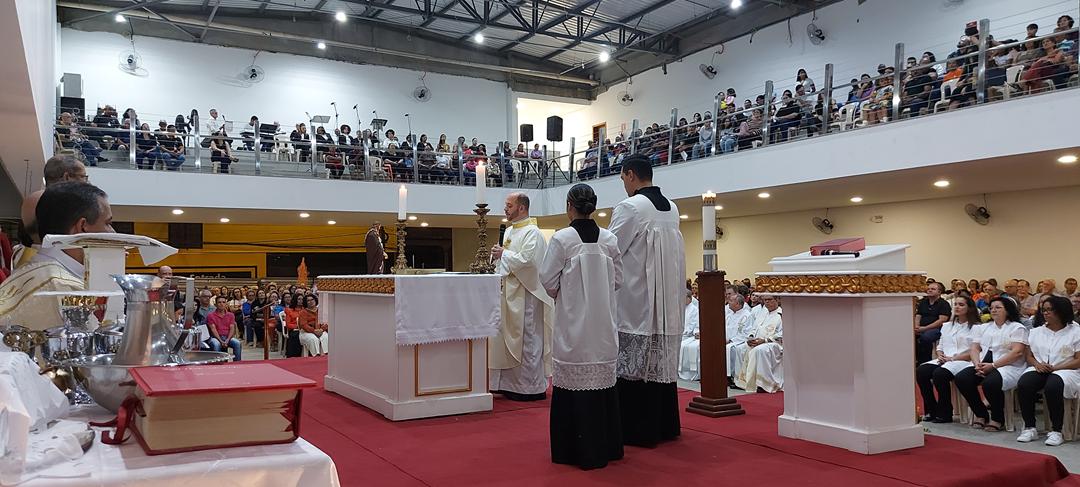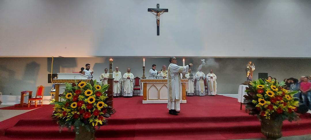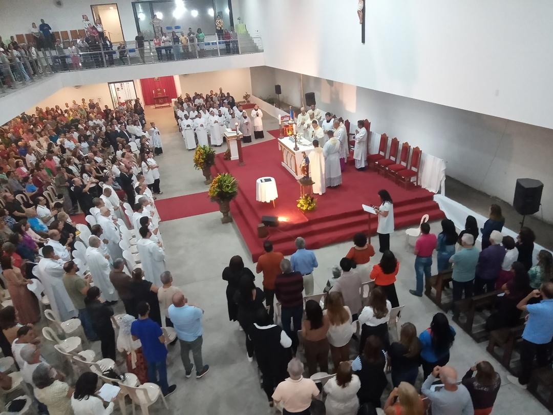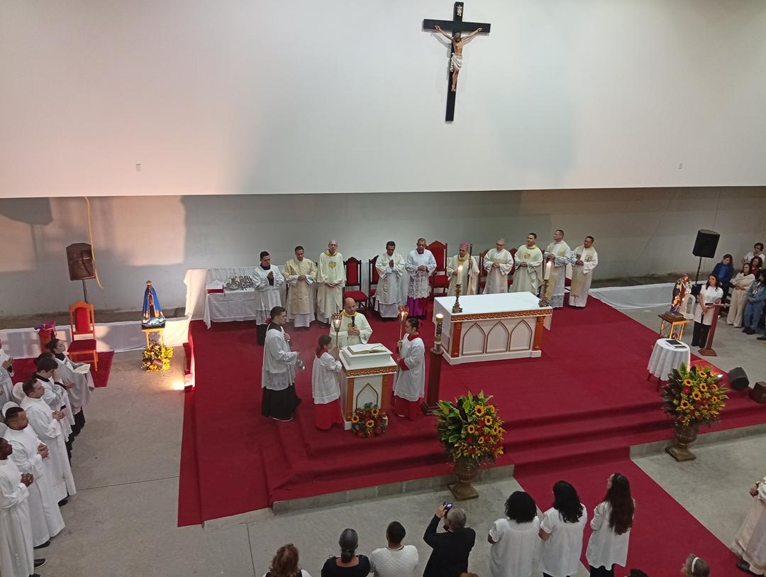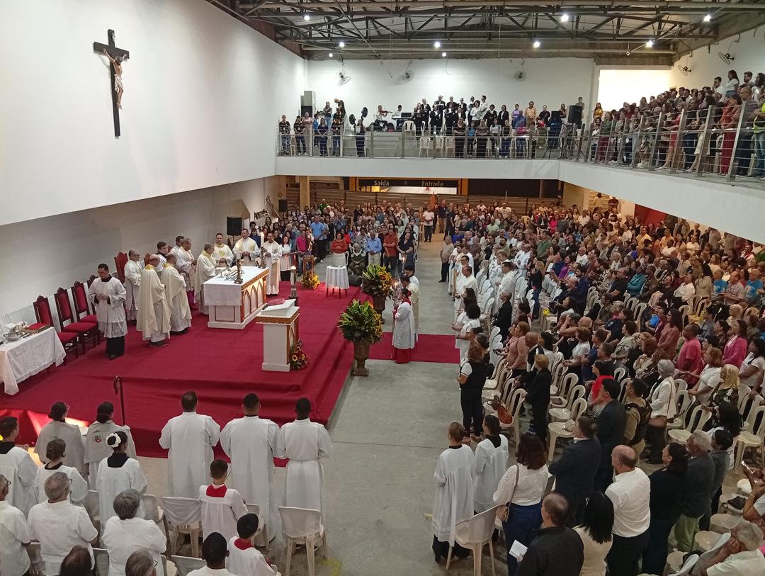 A celebração eucarística contou com a presença de autoridades civis e de uma grande porção do Povo de Deus. Foi concelebrada por diversos padres da Diocese, contando também com a presença de alguns diáconos permanentes e dos seminaristas estagiários de nossa Diocese: André, Marlon e Robson.
