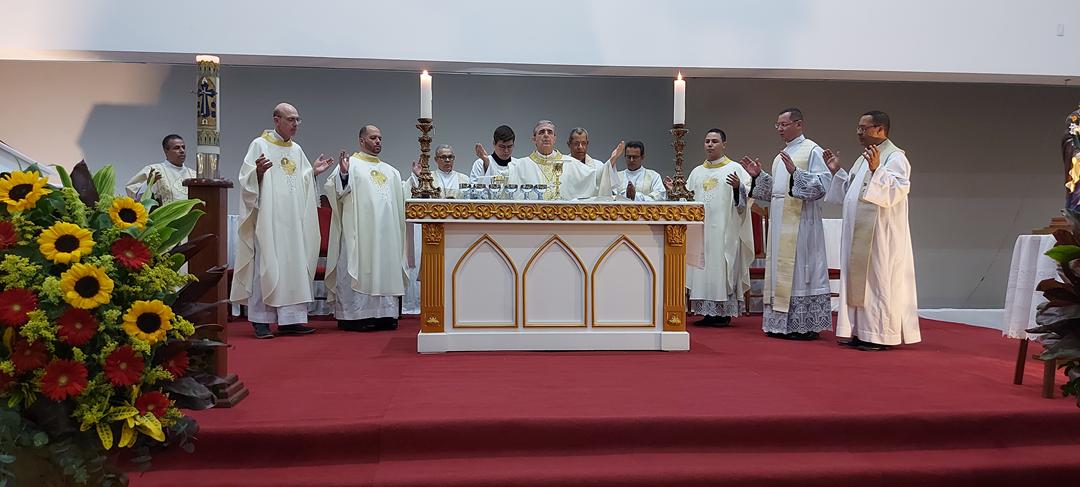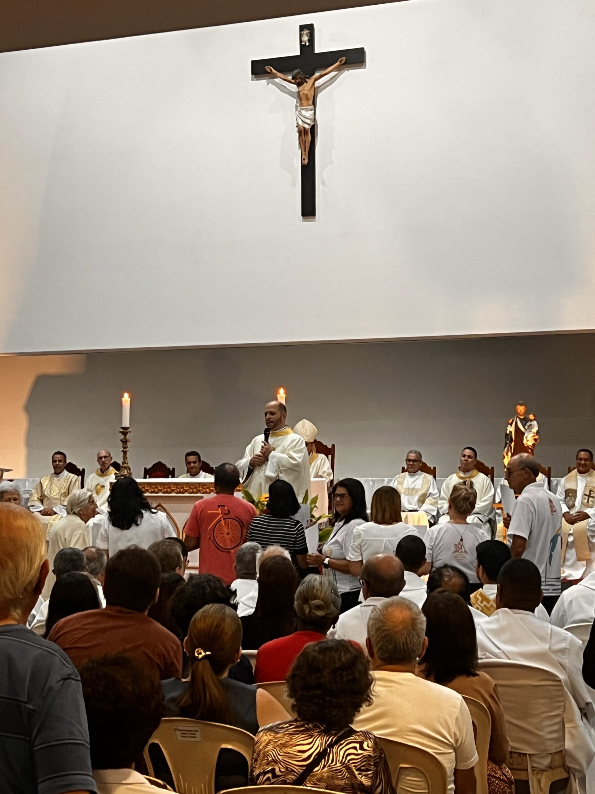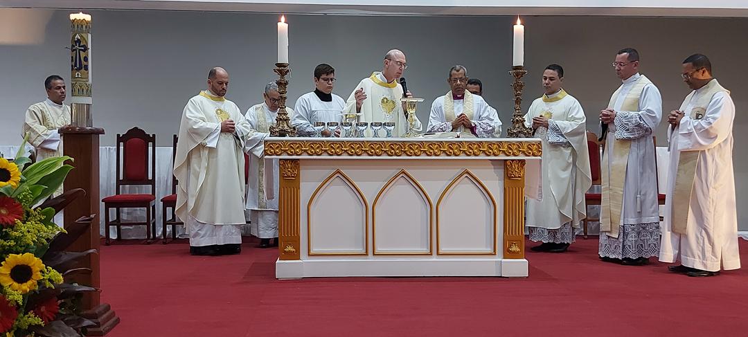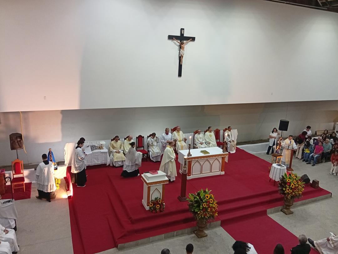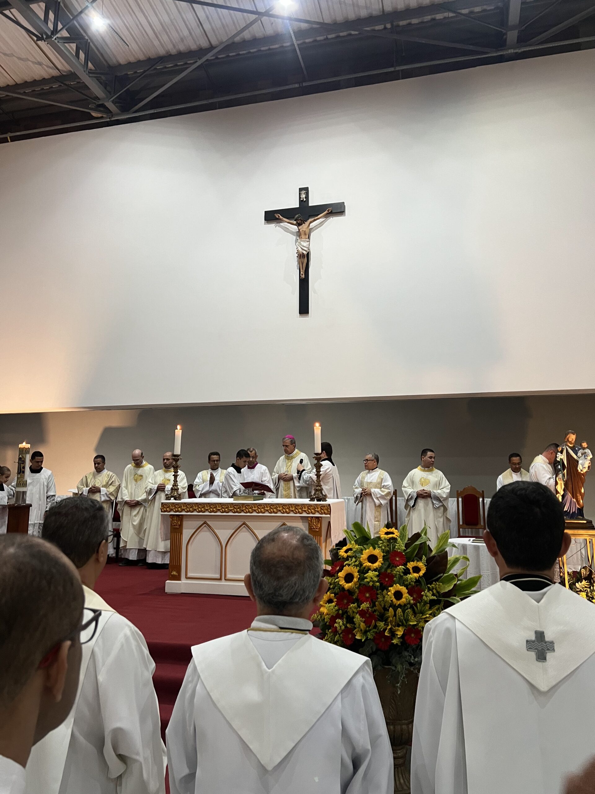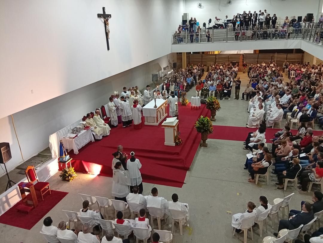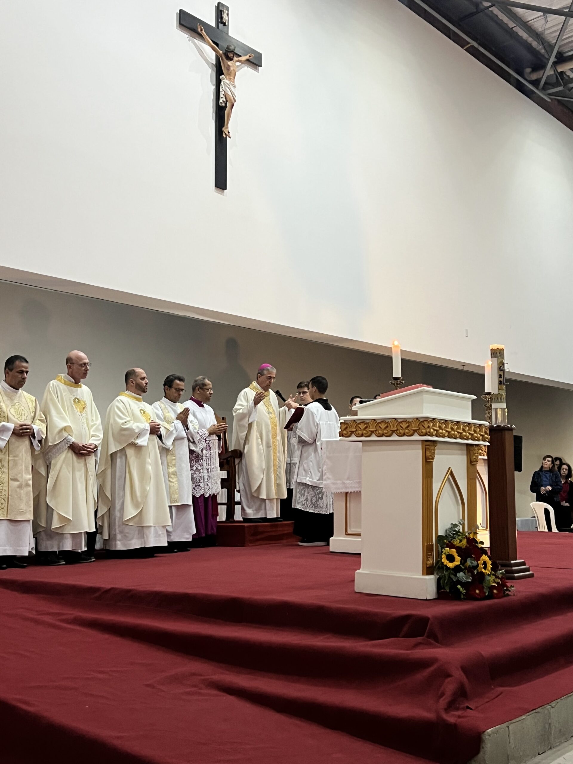 A celebração eucarística contou com a presença de autoridades civis e de uma grande porção do Povo de Deus. Foi concelebrada por diversos padres da Diocese, contando também com a presença de alguns diáconos permanentes e dos seminaristas estagiários de nossa Diocese: André, Marlon e Robson.