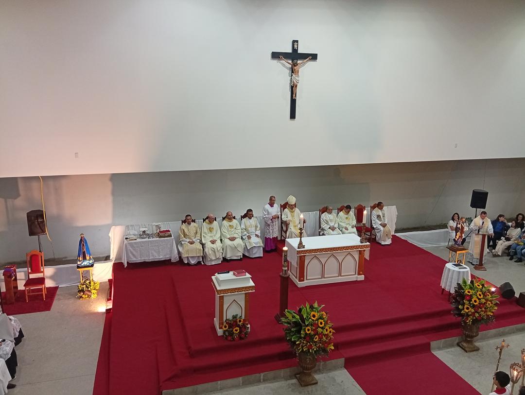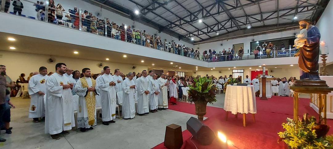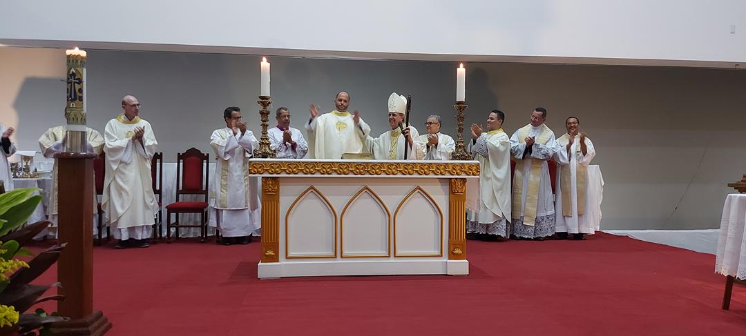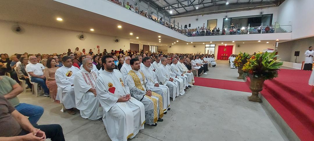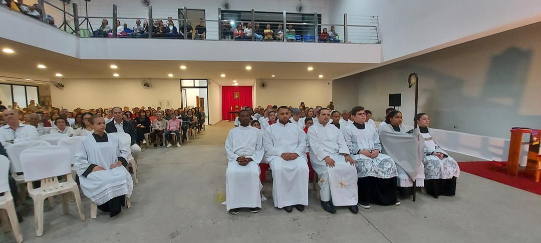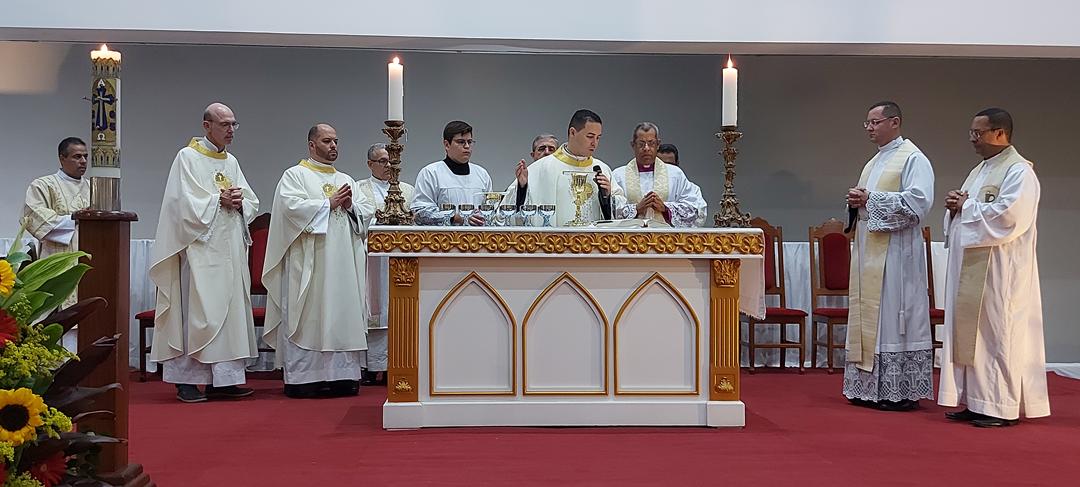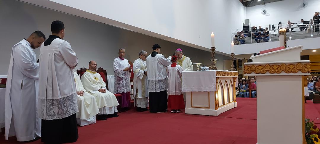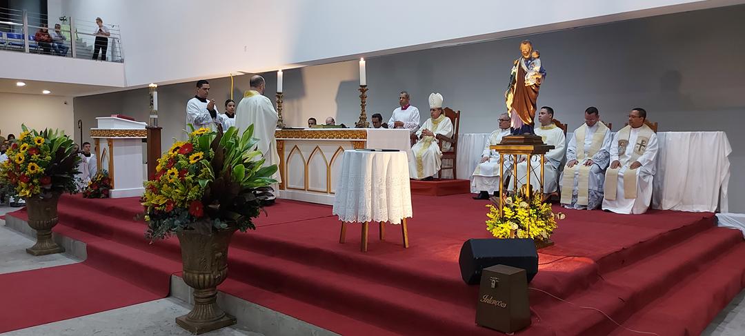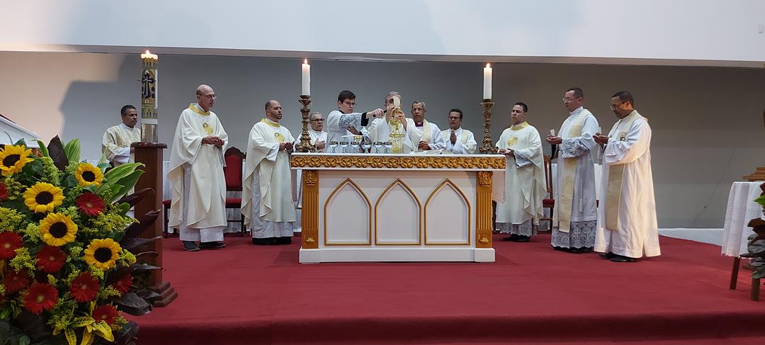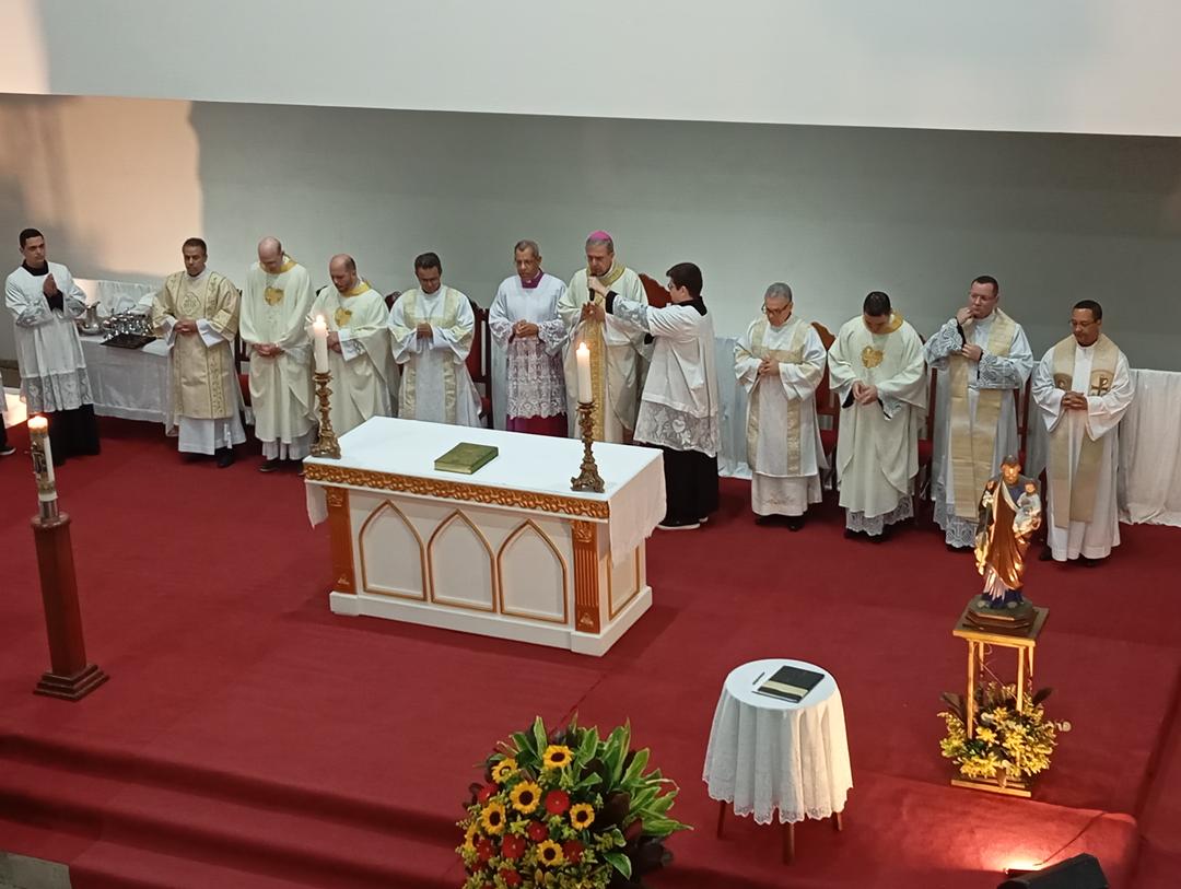 A celebração eucarística contou com a presença de autoridades civis e de uma grande porção do Povo de Deus. Foi concelebrada por diversos padres da Diocese, contando também com a presença de alguns diáconos permanentes e dos seminaristas estagiários de nossa Diocese: André, Marlon e Robson.