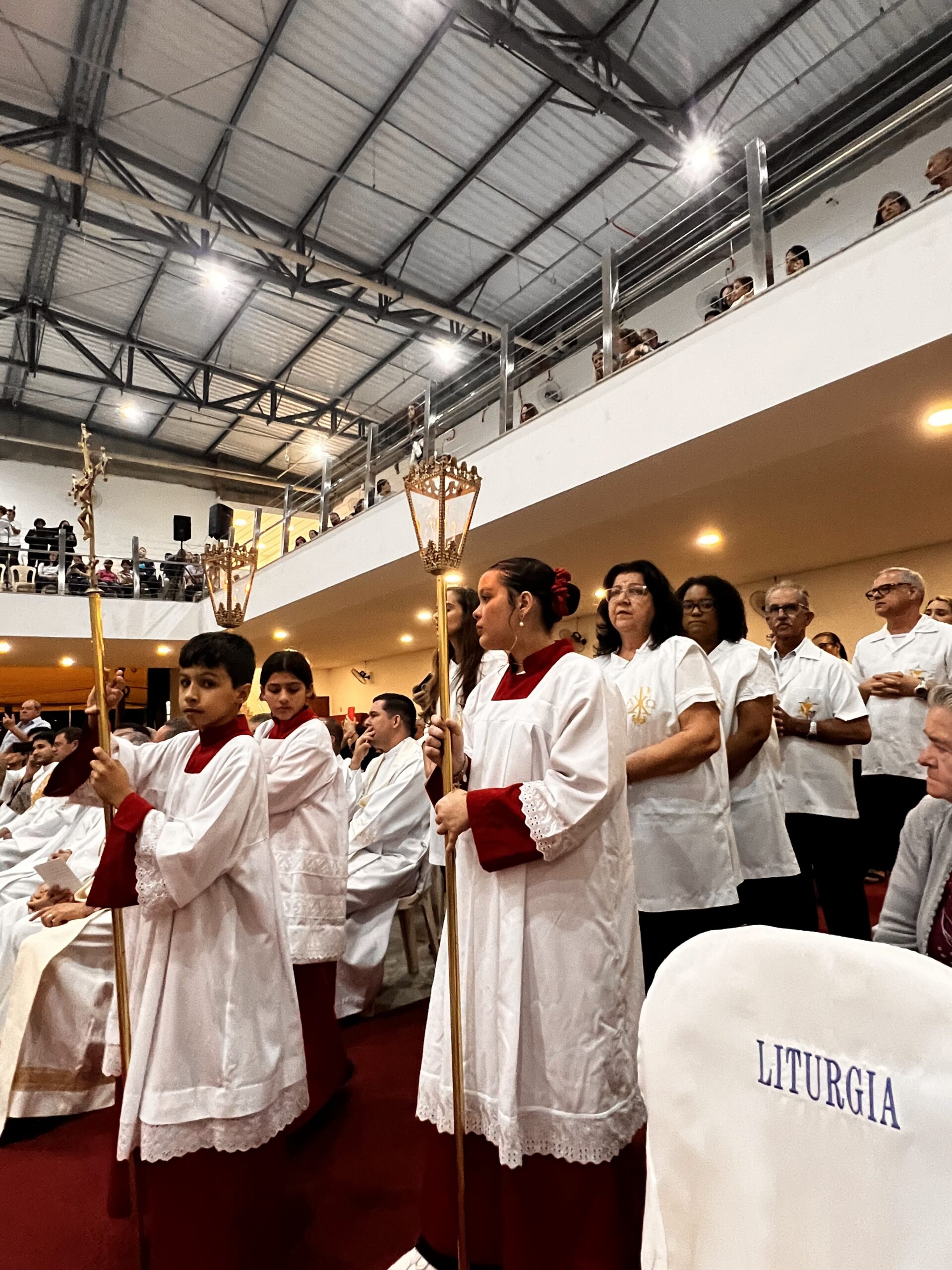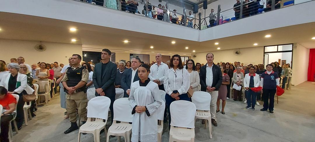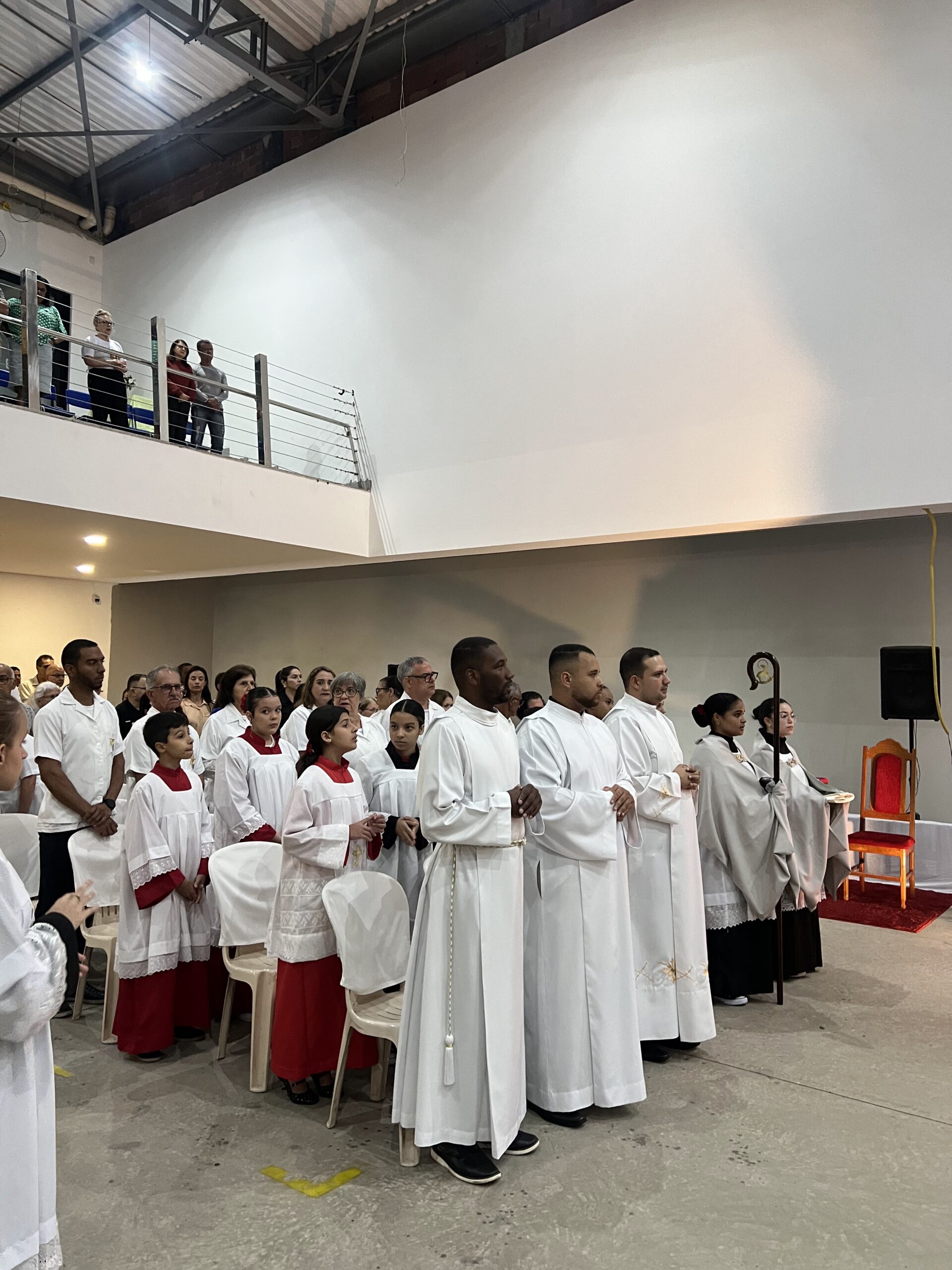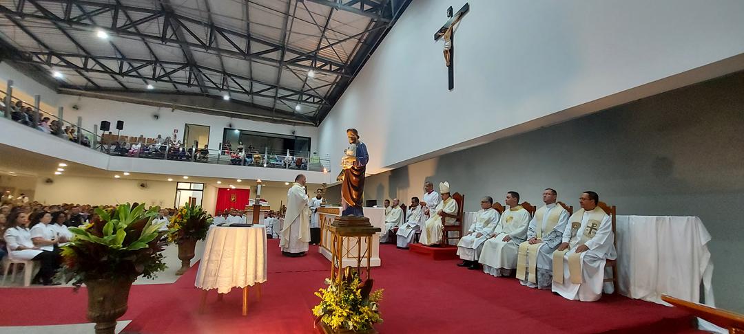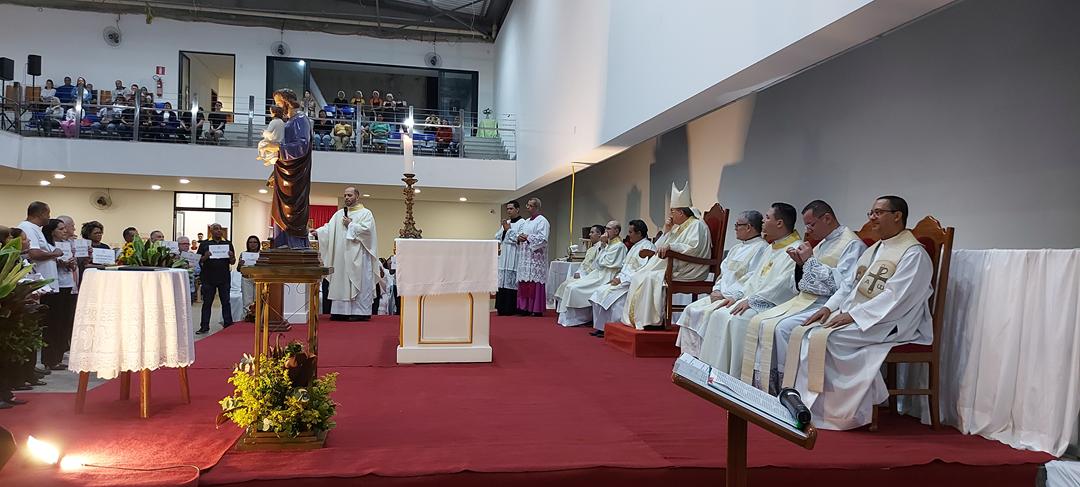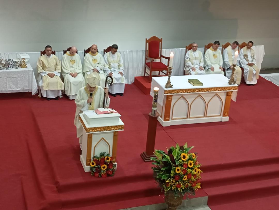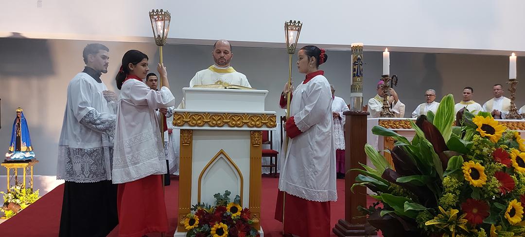 A celebração eucarística contou com a presença de autoridades civis e de uma grande porção do Povo de Deus. Foi concelebrada por diversos padres da Diocese, contando também com a presença de alguns diáconos permanentes e dos seminaristas estagiários de nossa Diocese: André, Marlon e Robson.