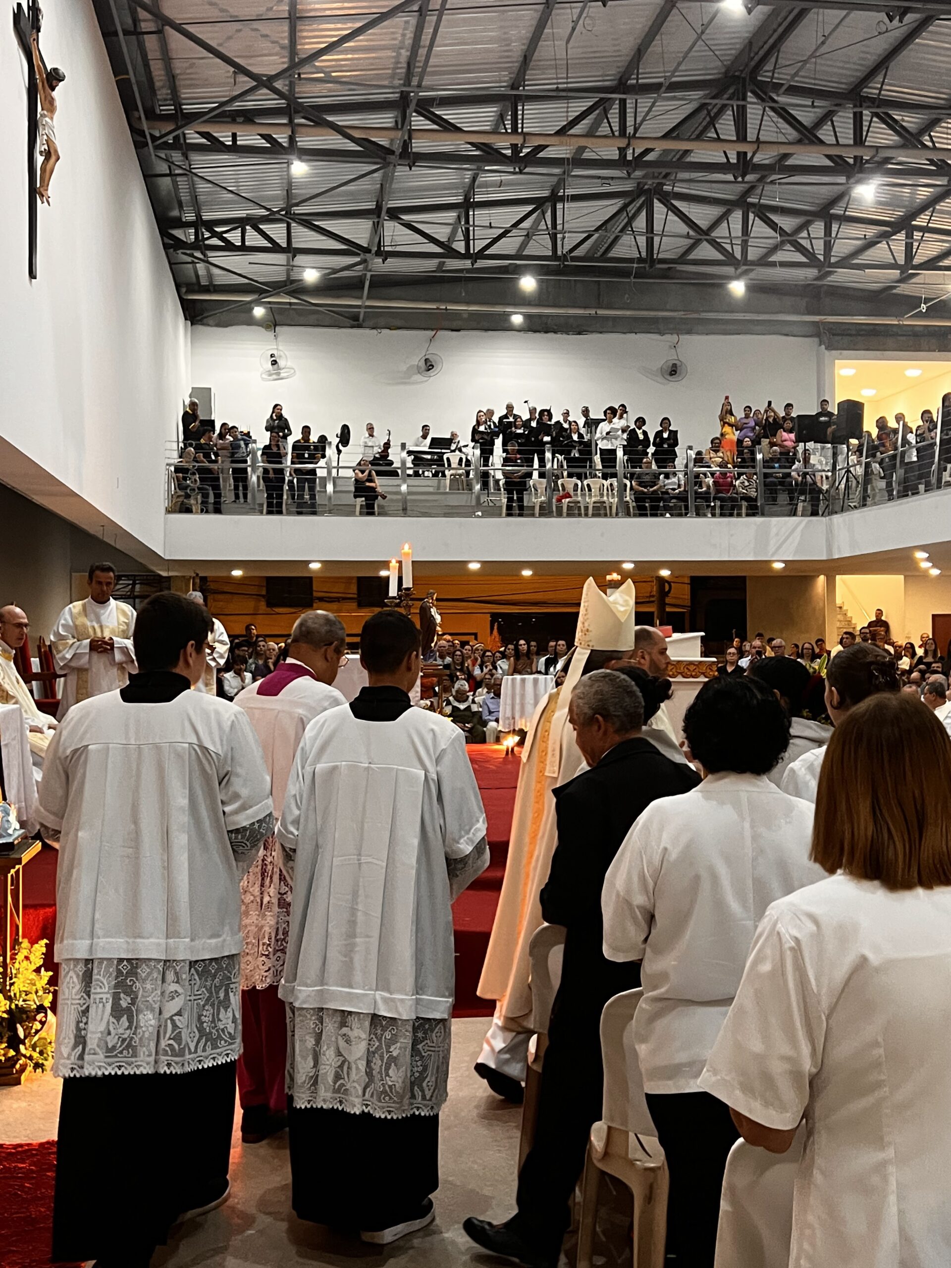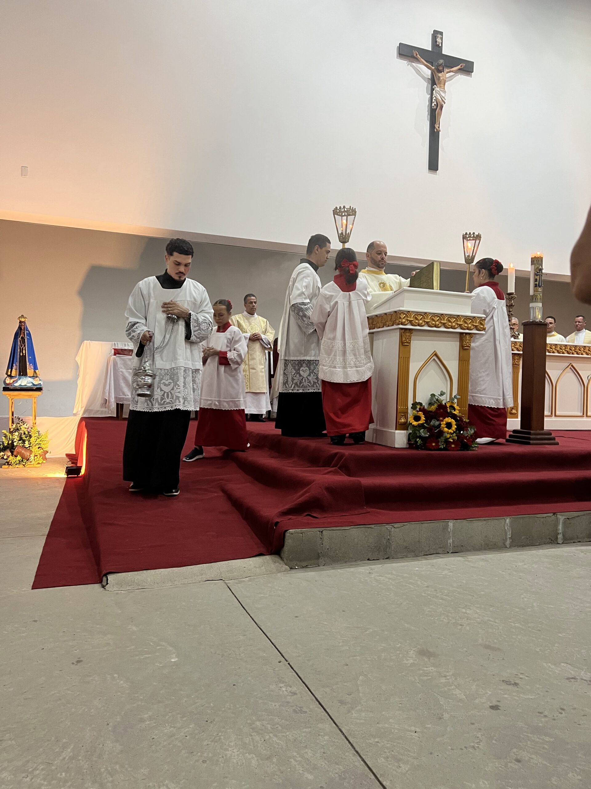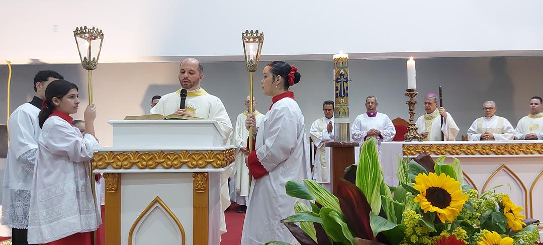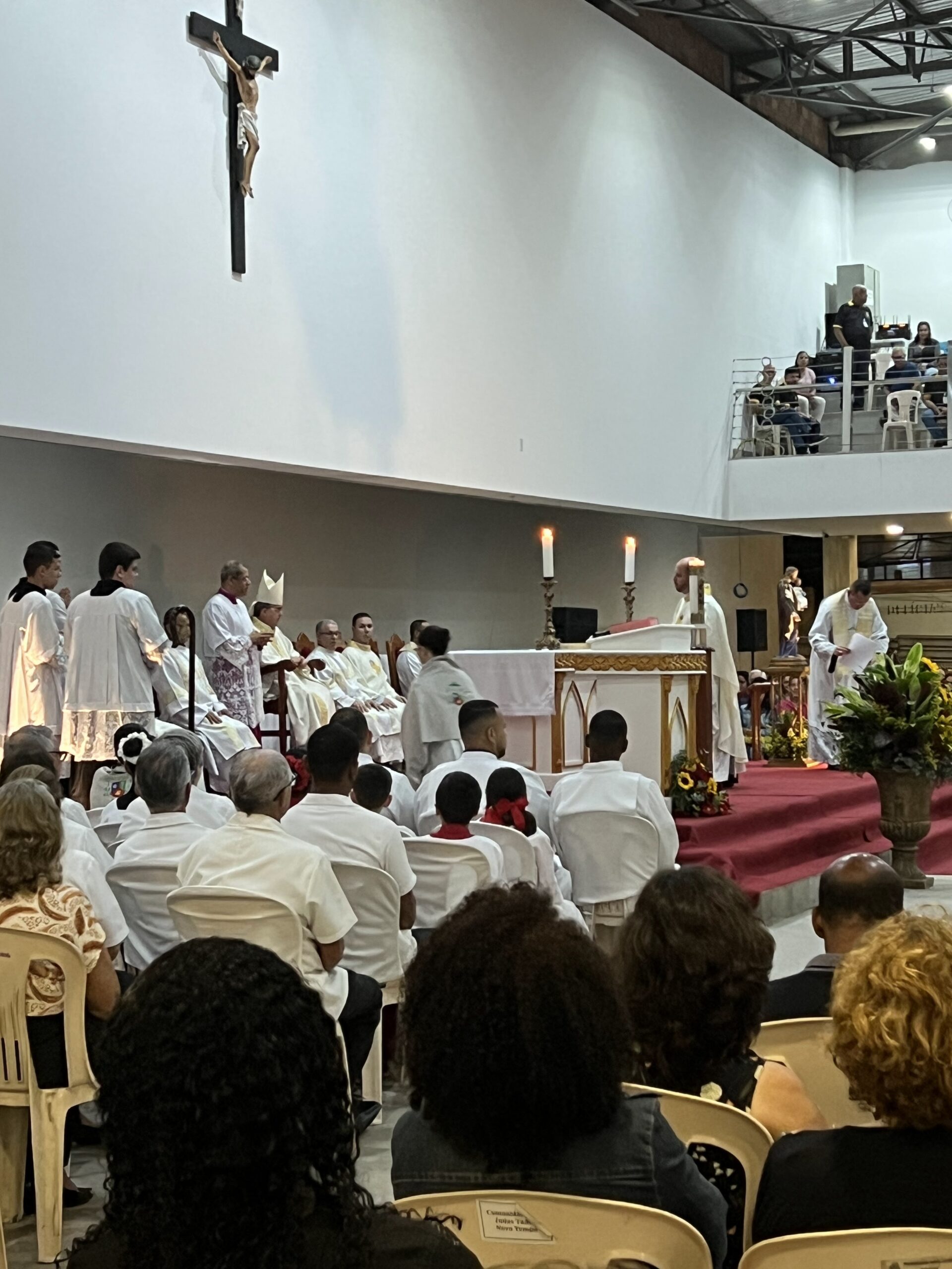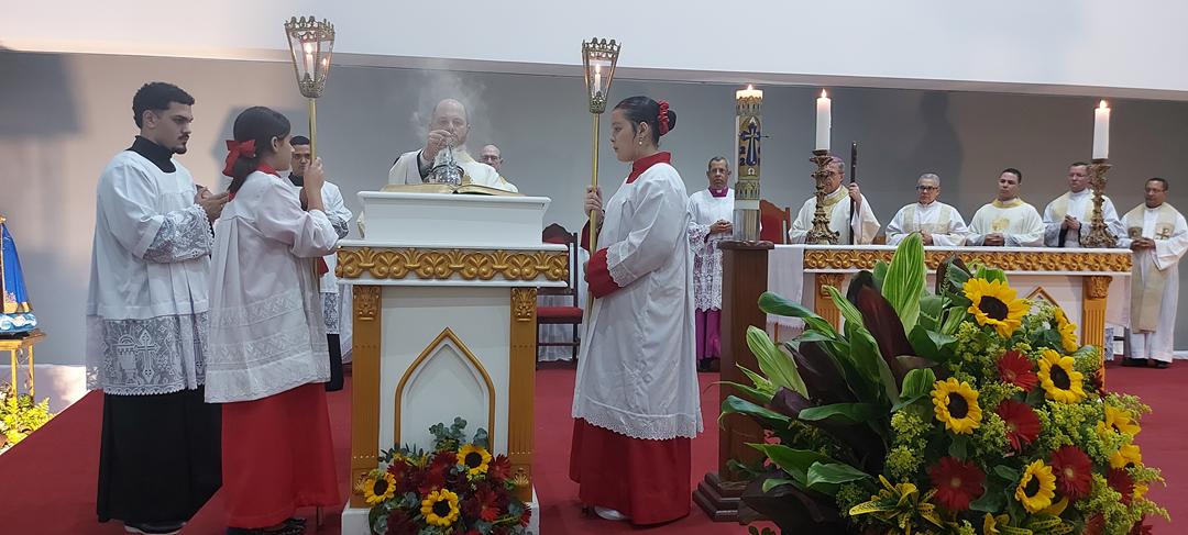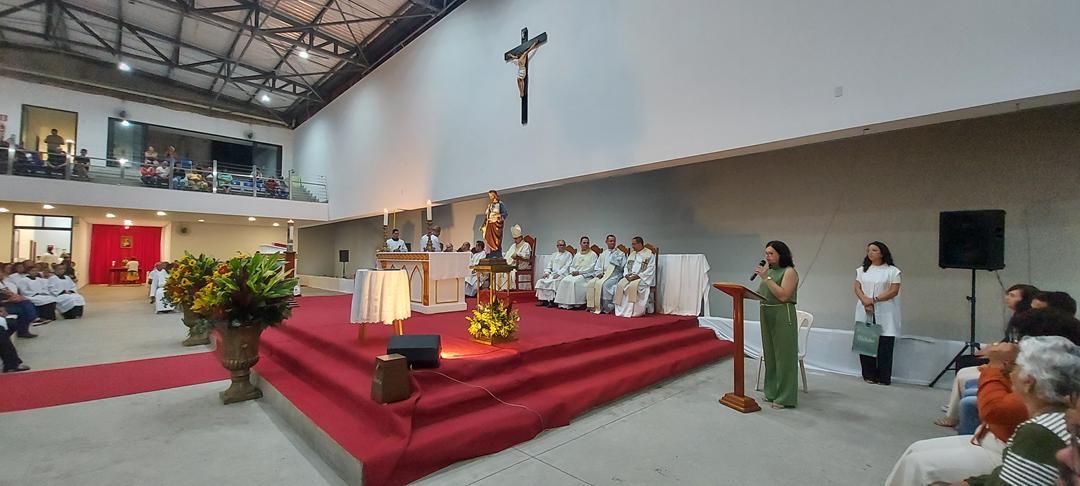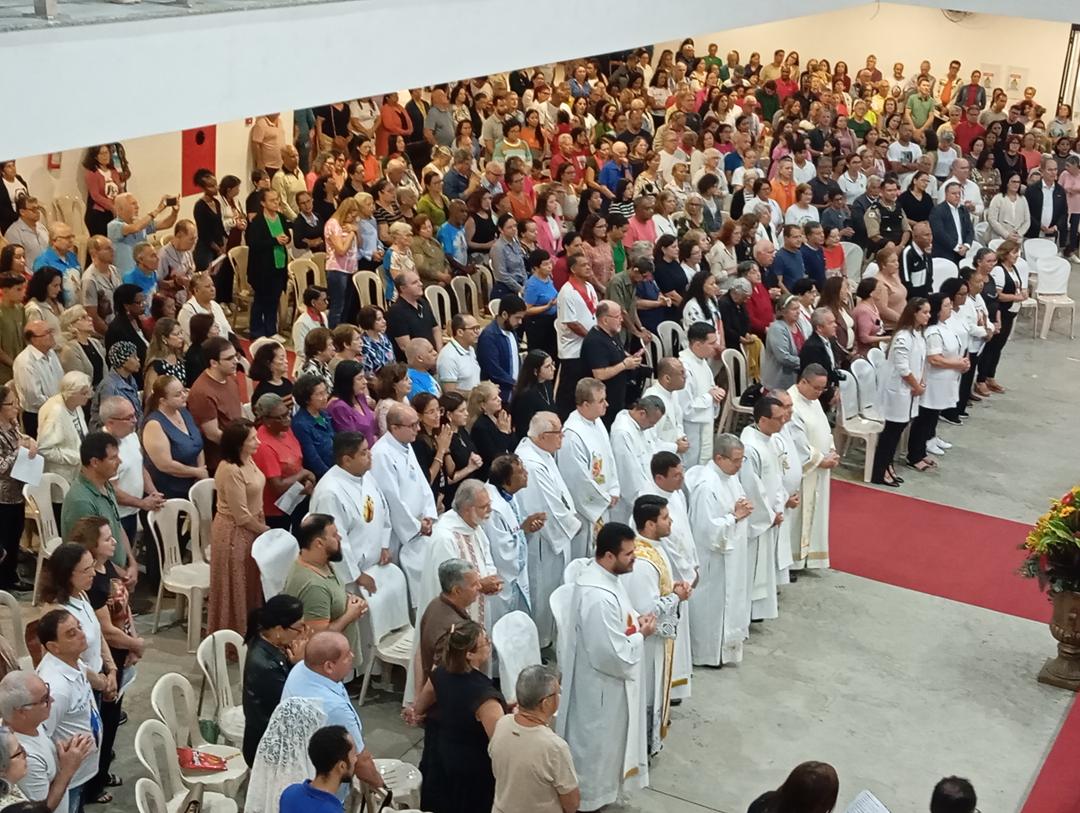 A celebração eucarística contou com a presença de autoridades civis e de uma grande porção do Povo de Deus. Foi concelebrada por diversos padres da Diocese, contando também com a presença de alguns diáconos permanentes e dos seminaristas estagiários de nossa Diocese: André, Marlon e Robson.