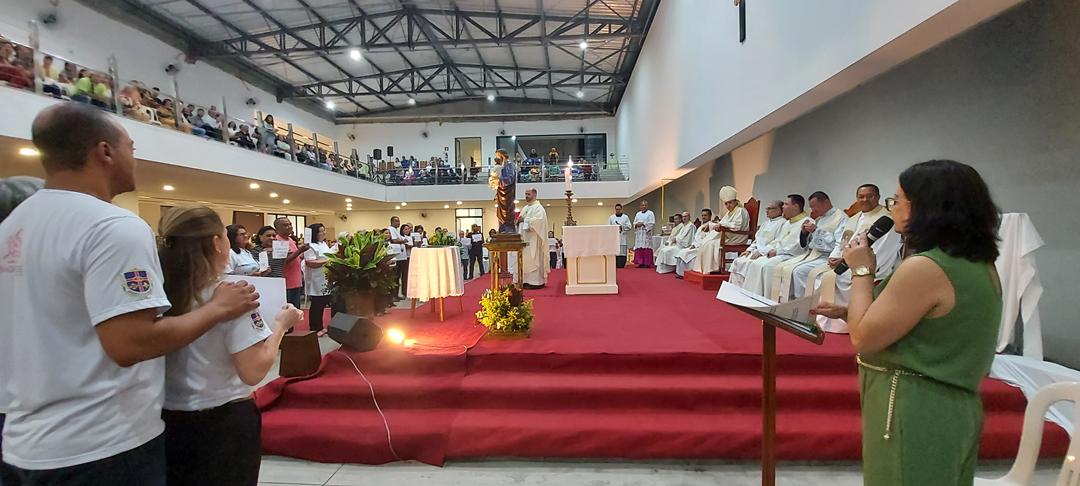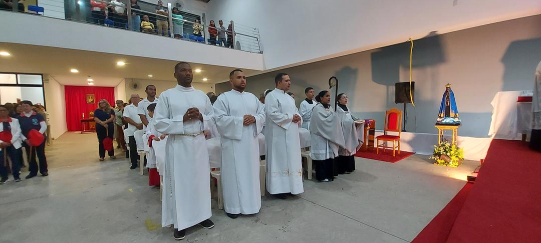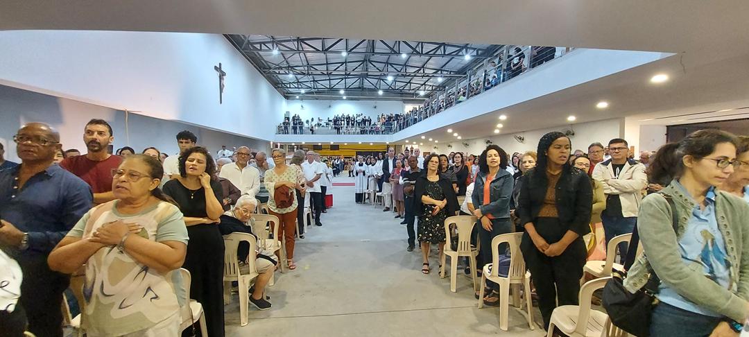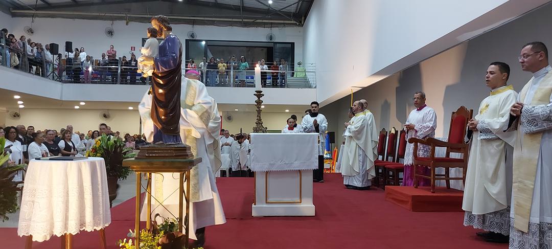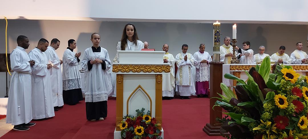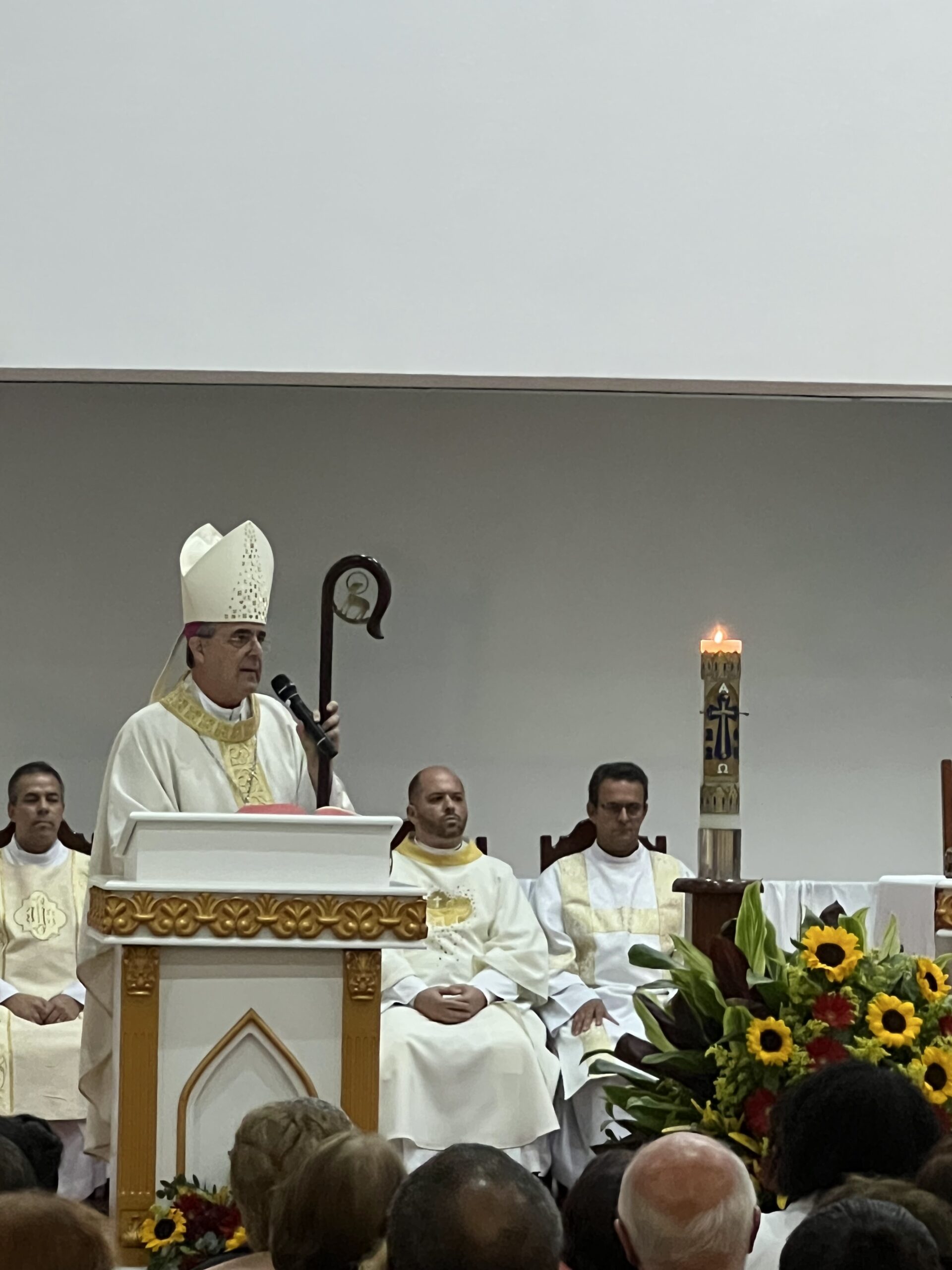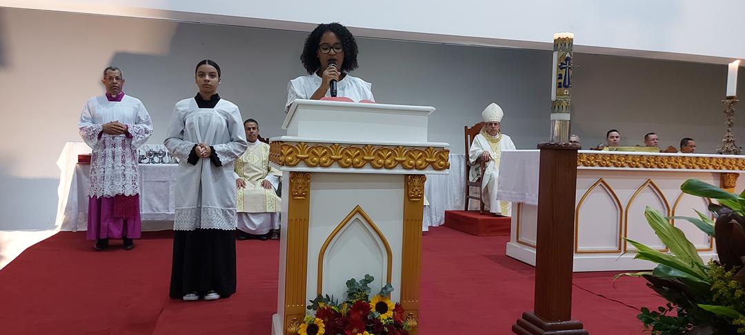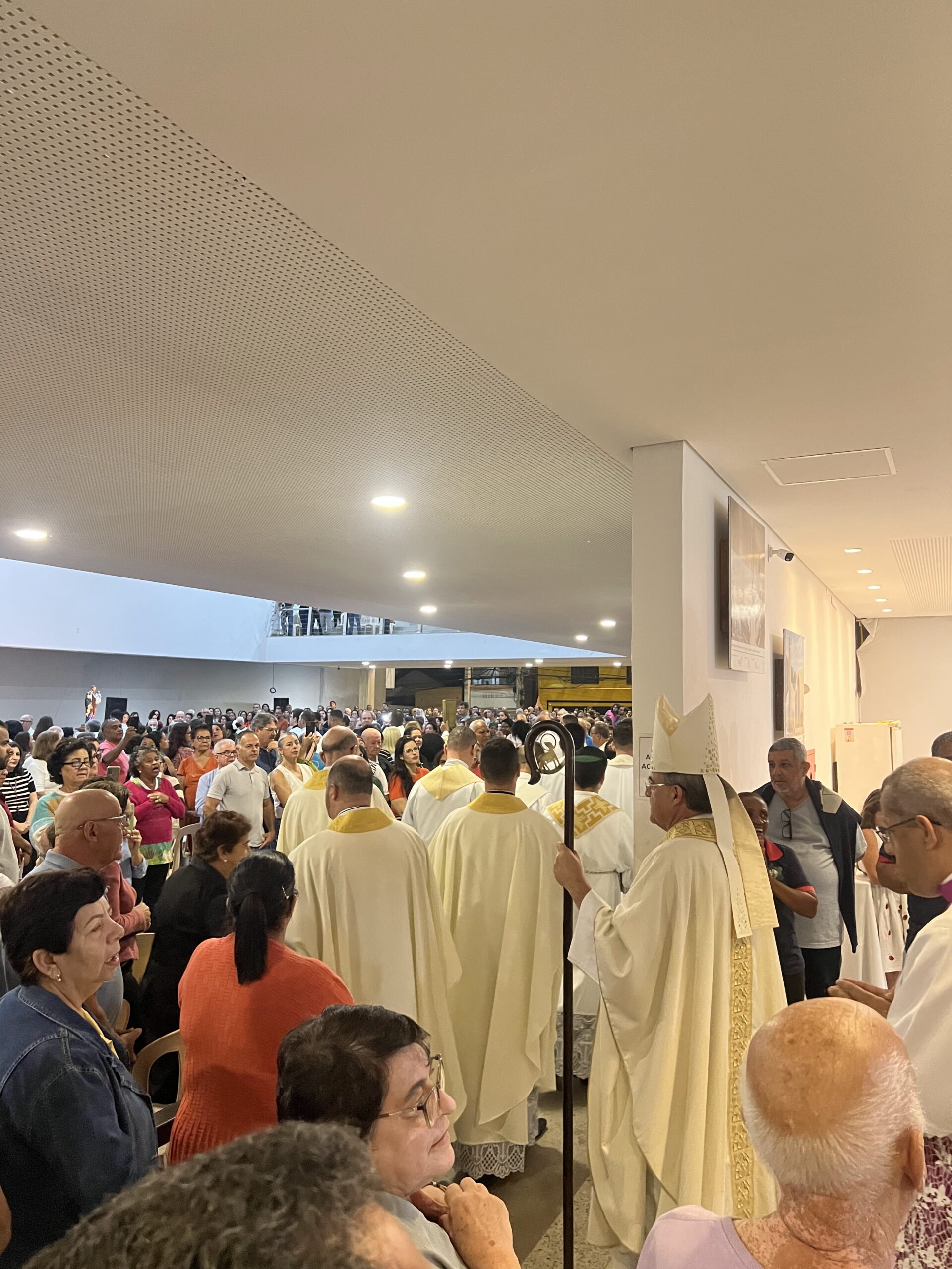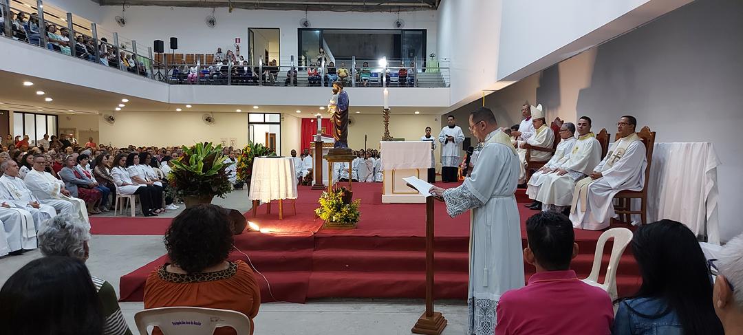 A celebração eucarística contou com a presença de autoridades civis e de uma grande porção do Povo de Deus. Foi concelebrada por diversos padres da Diocese, contando também com a presença de alguns diáconos permanentes e dos seminaristas estagiários de nossa Diocese: André, Marlon e Robson.