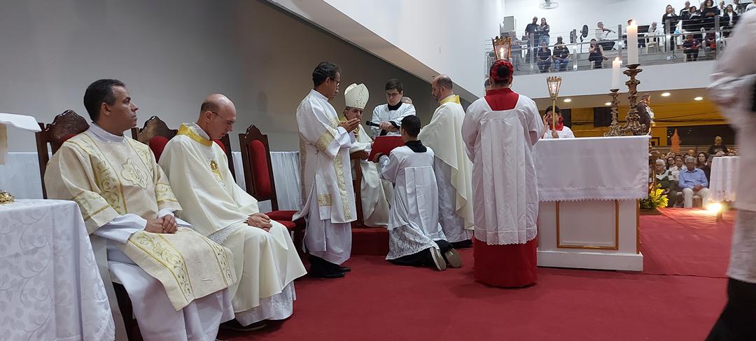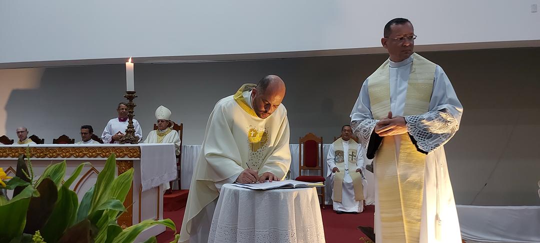 Após a homilia, o novo pároco renovou as promessas sacerdotais diante do bispo diocesano e recebeu alguns instrumentos para bem desempenhar sua missão: a chave do sacrário, o batistério, o confessionário e a Sédia (cadeira da presidência). O novo pároco foi então apresentado à comunidade reunida, que, com alegria, o acolheu como seu pastor.