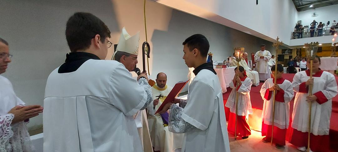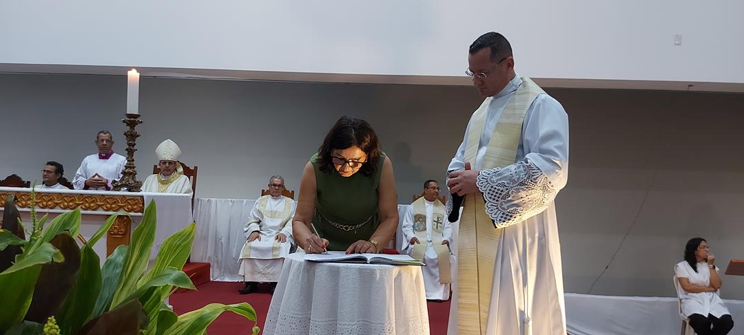 Após a saudação inicial, realizada por Dom Marco Aurélio, e a entrega das chaves da Igreja, o Chanceler do Bispado, Pe. Ueliton Neves da Silva, fez a leitura da provisão de nomeação. Em seguida, o Pe. Fernando Andrade, diante do altar, proferiu a profissão de fé e prestou o juramento de fidelidade. Antes da aclamação do Evangelho, recebeu das mãos do Bispo o Evangeliário e proclamou o Evangelho, recordando que uma das funções do pároco é o anúncio da Palavra.