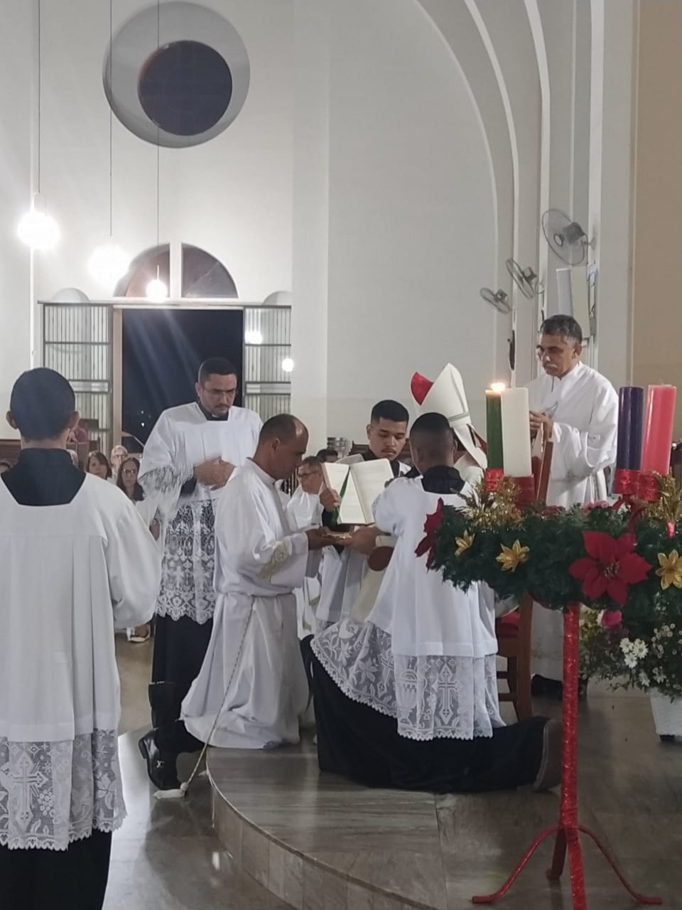 A celebração presidida pelo bispo diocesano, Dom Marco Aurélio Gubiotti, foi concelebrada pelo Pe. Pascifal José do Nascimento e Pe. Nailson Mangabeira da Silva, CR, e contou com a presença de alguns dos diáconos permanentes da Diocese de Itabira – Coronel Fabriciano. Em sua homilia, Dom Marco Aurélio Gubiotti ressaltou a importância do papel do acólito e a beleza desse serviço para a vida da Igreja, e motivou os novos ministros a desempenharem essa missão com amor e compromisso.