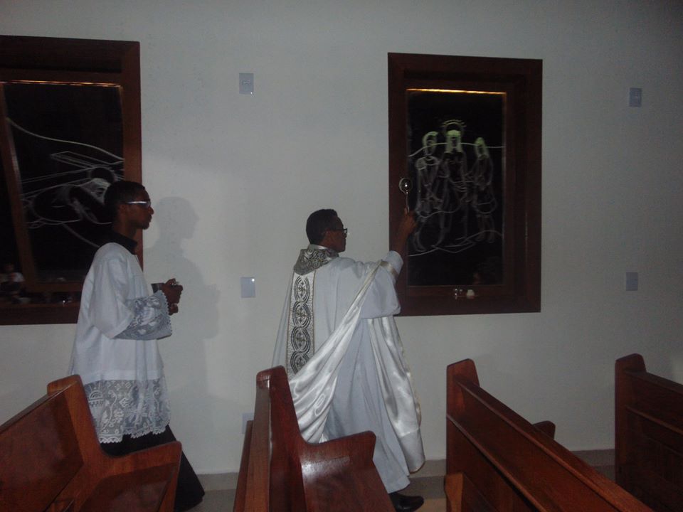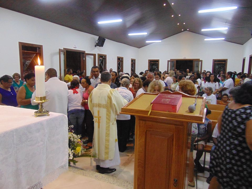 Para comemorar a conclusão das obras e retorno das celebrações na Igreja, houve uma programação especial, que teve início às 18 horas com a oração do Santo Terço na praça do bairro, próximo a Igreja, conduzida pelo grupo do Terço dos Homens. Após a oração, com a presença de diversas caravanas das comunidades e representantes da Paróquia, o pároco, Pe. Pascifal José do Nascimento, iniciou a Santa Missa na praça que seguiu em procissão junto dos fiéis para a nova Igreja. Na parte externa da Igreja, se deu outra parte da cerimônia, onde o arquiteto Saimon e administrador da obra entregou as chaves ao Pe. Pascifal que as abençoou e convidou a todos para entrarem no novo templo, dando continuidade na celebração em Ação de Graças. Participaram também da Santa Missa o Diácono Ronaldo de Carvalho e o Seminarista Márcio Rodrigo Mota.
